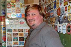 Вперше ми дізналися про незвичайне захоплення нашого земляка, коли побачили його стенди з сотнями етикеток на одному з пивних фестивалів, що проводяться в Кременчуці. Тепер Юрій з гордістю показував свій домашній музей, що розмістився … в туалеті. Квартира в нього гарно відремонтована, затишна, скрізь комфортні меблі. Куди ж там стіни псувати? А ось у туалеті такі „шпалери” нікому не заважають.