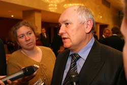 Натомість, навіть за запрошенням потрапити до зали було не просто. Понад тисячу гостей святкової церемонії, спочатку проходили через металеву рамку безпеки під пильним оком численних охоронців. У самому ж фойє палацу гостей зустрічала музика та стійки буфетів. Не обминули буфет і кременчужани. Зазначимо, що підтримати мера до Києва прибули кременчуцькі промисловці-важковаговики: Геннадій Леготкін (колісний завод) та Володимир Приходько (вагонобудівний завод). Невідомо, що пили та їли міський голова з друзями, однак в меню ми вичитали, що коньяк в палаці “Україна” коштує від 4 до 98 гривень за 50 грамів, бутерброд з ікрою можна придбати за десять гривень. Тож мер і Ко, випивши по 50 грамів для хоробрості, увійшли до зали, де серед майже тисячі претендентів обирали лише 19 переможців.