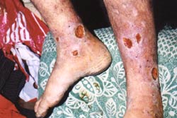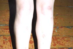 На фото 1: ноги 19-річної системної наркоманки, трасовички. За рік регулярного вживання ширки ноги дівчини вкрилися трофічними виразками. Вони ще слабо помітні.