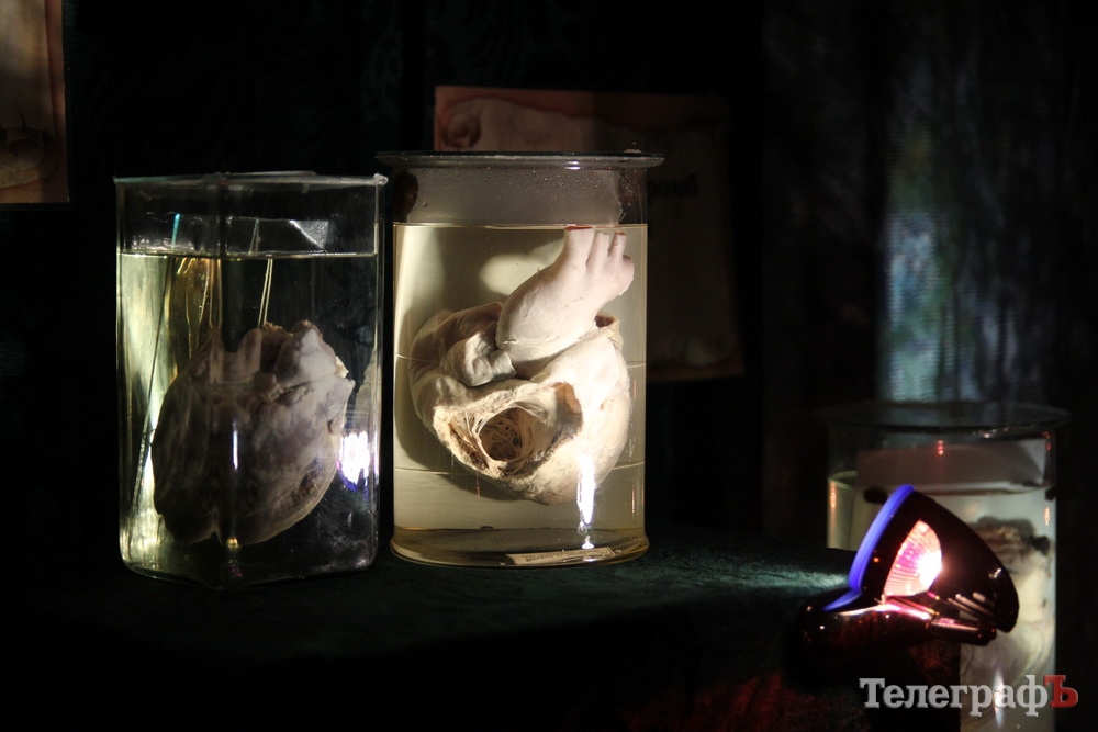 Выставка «Кабинет диковинок» приехала в Кременчуг из Санкт-Петербурга. 56 экспонатов, среди которых аномалии, патологии и отклонения, расположились в помещении ДК «КрАЗ».