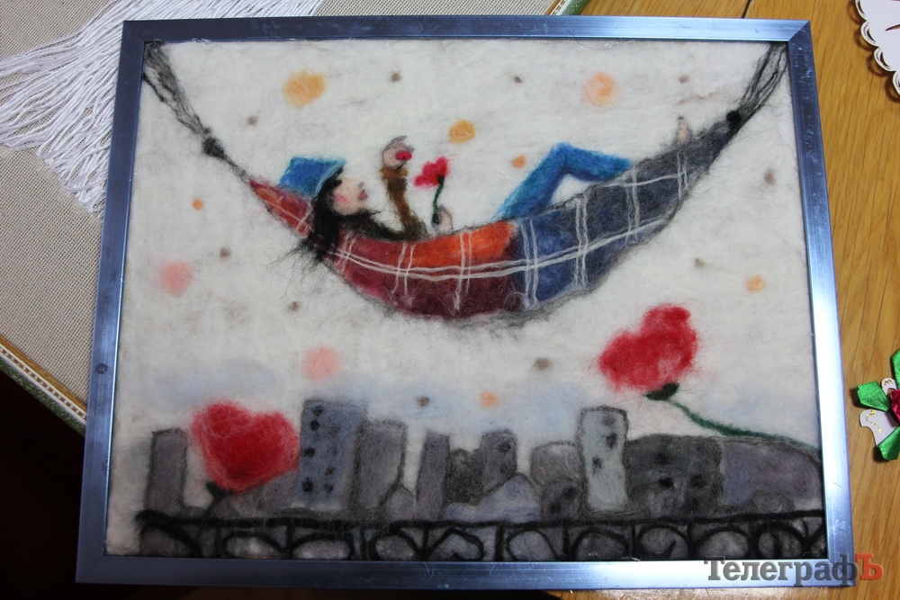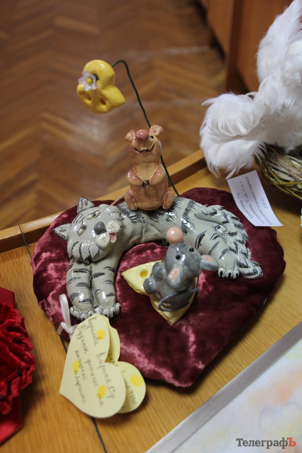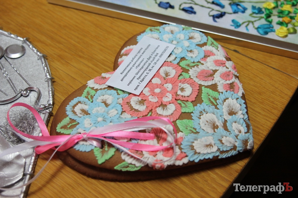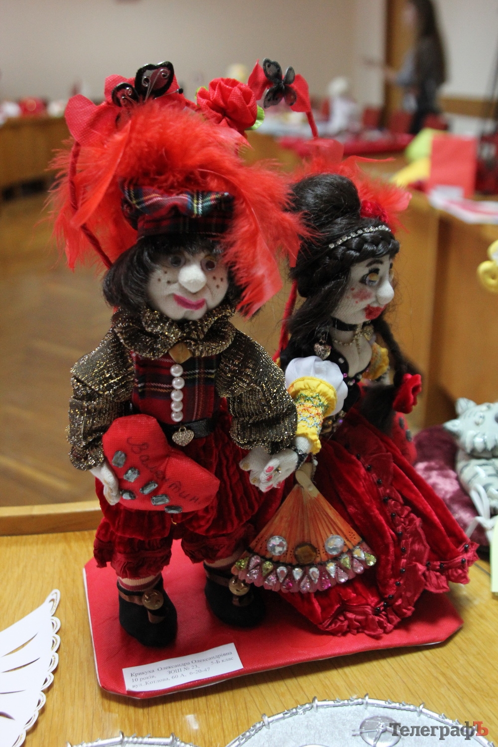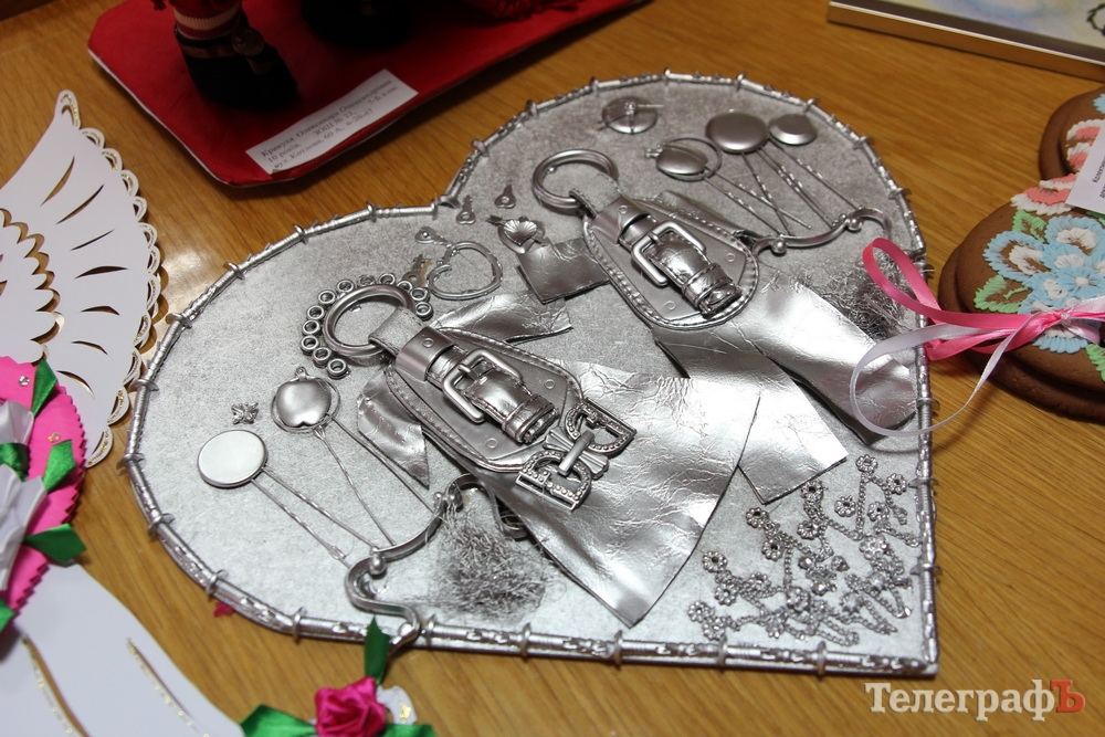 На конкурсе показали большие имбирные пряники в форме сердца, глиняные скульптуры, куклы ручной работы, валянные, рисованные и вышитые картины, кофейные сувенирчики и огромное множество всего другого.