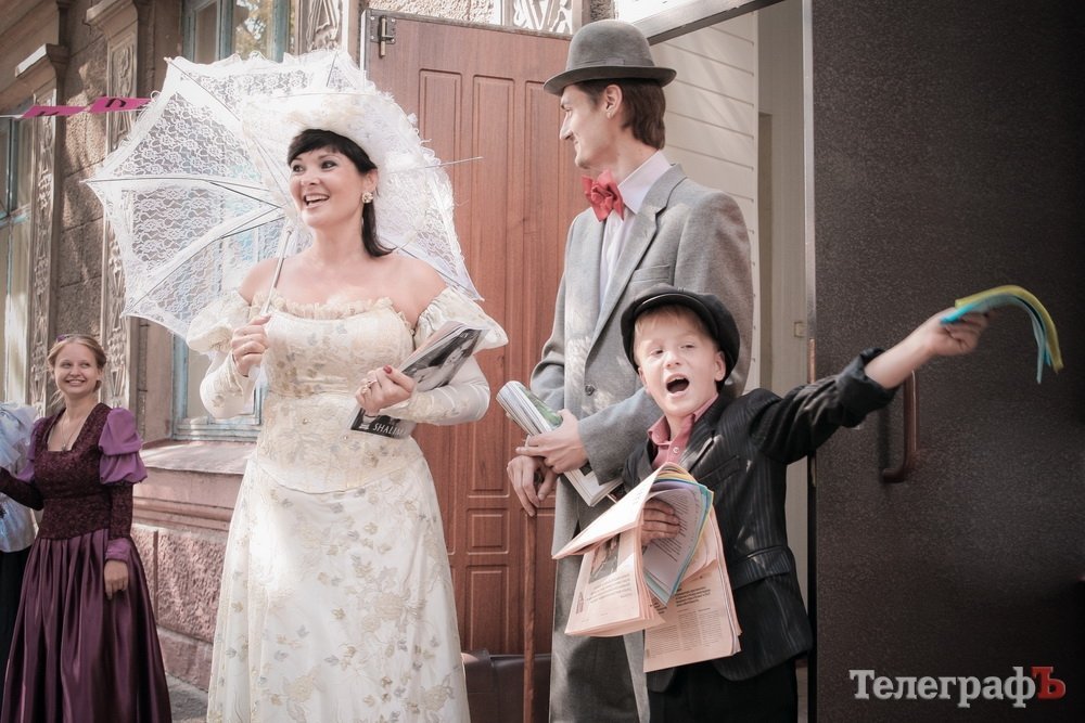 Вдоль улицы бегал мальчик Егор со стопкой старых пожелтевших газетенок. Парнишка одет в костюмчик и великоватую на него шапку-хулиганку, при этом он громко кричал: «Внимание, внимание! В Кременчуге открылся Читающий бульвар!». Сотрудники библиотеки им. М.Горького также нарядились в костюмы под старину, раздавали бесплатные книги и просто радовали глаз прохожим.