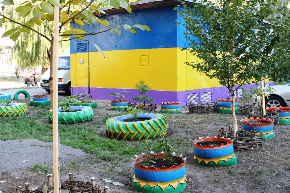 Главными помощниками были дети - они и красили, и белили, и ветки носили, и листья сгребали, и садили деревья, кусты, цветы. В общей сложности было посажено более 50 растений.