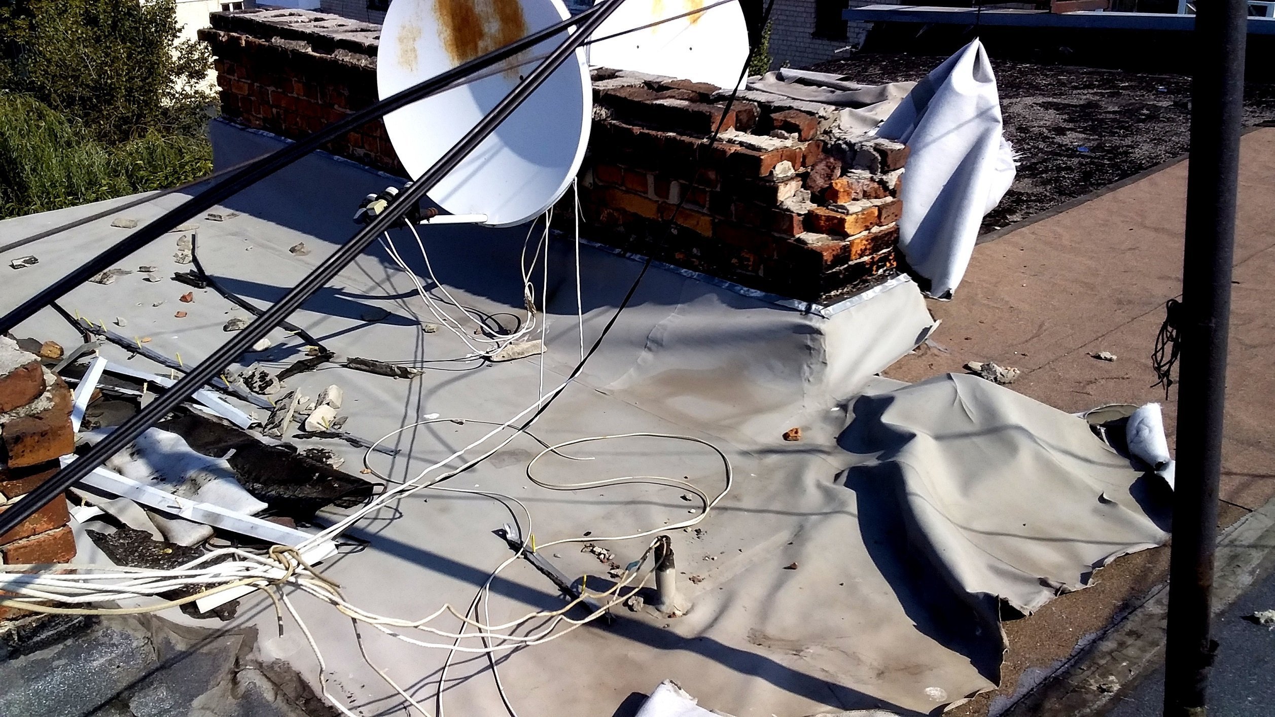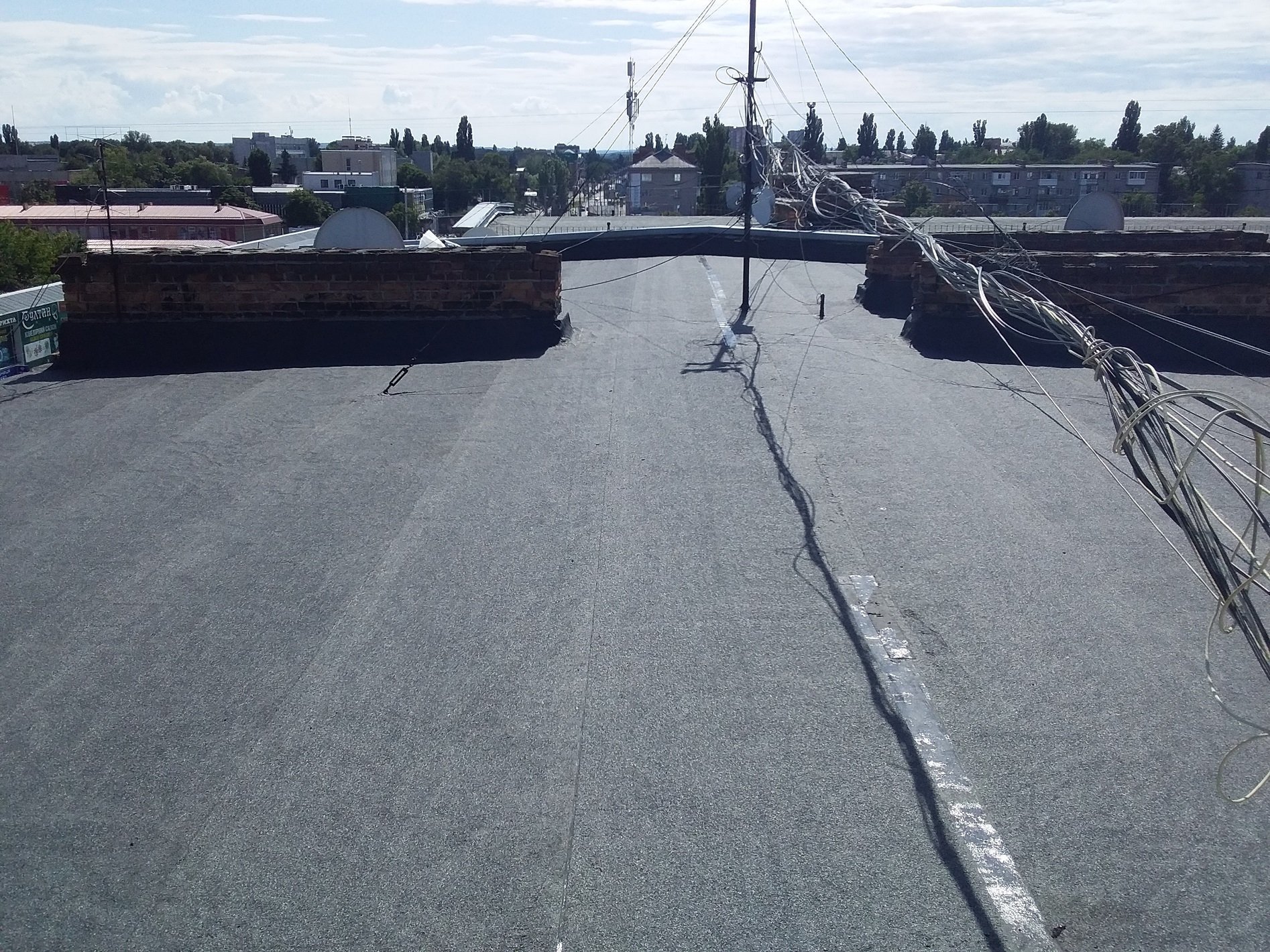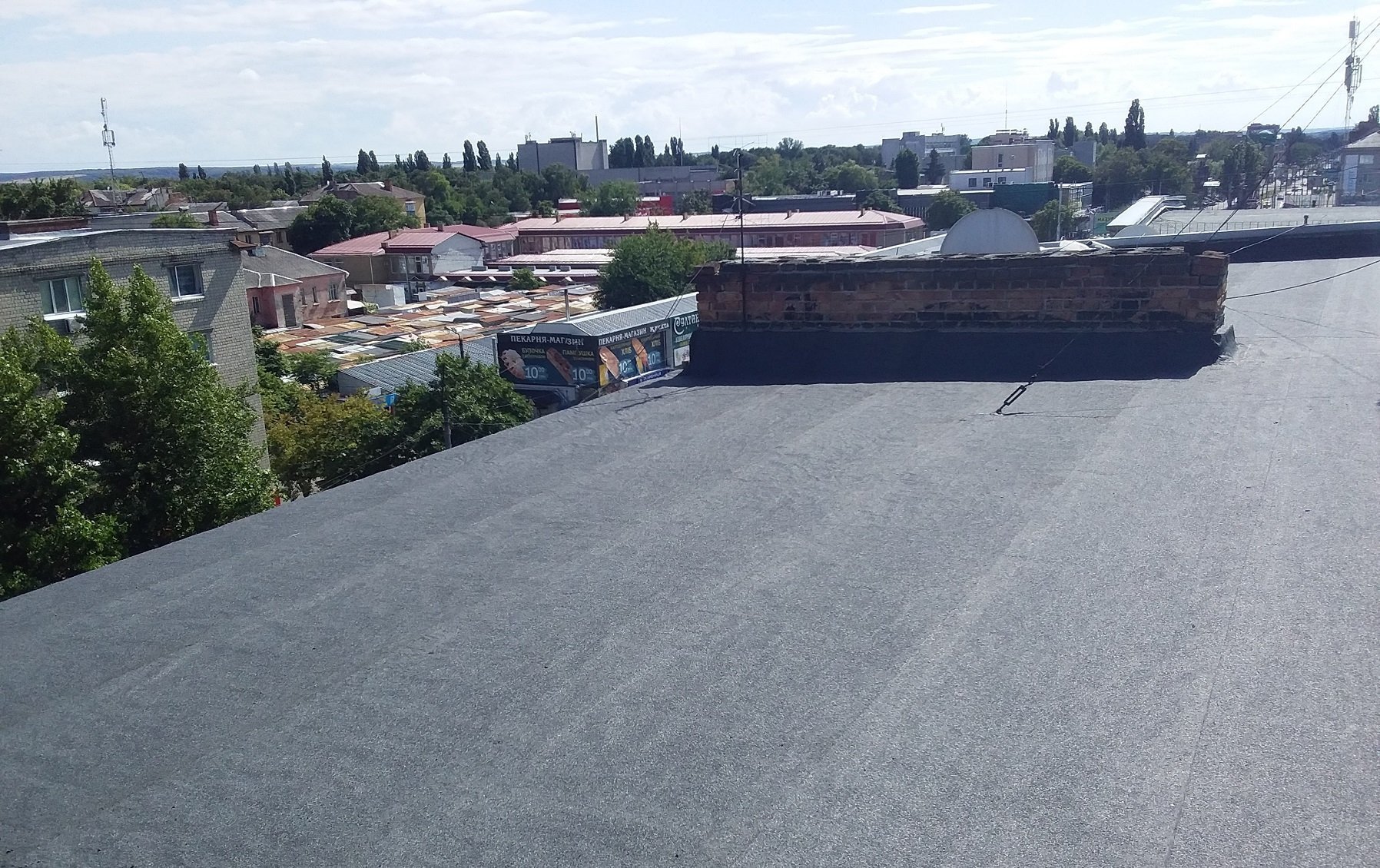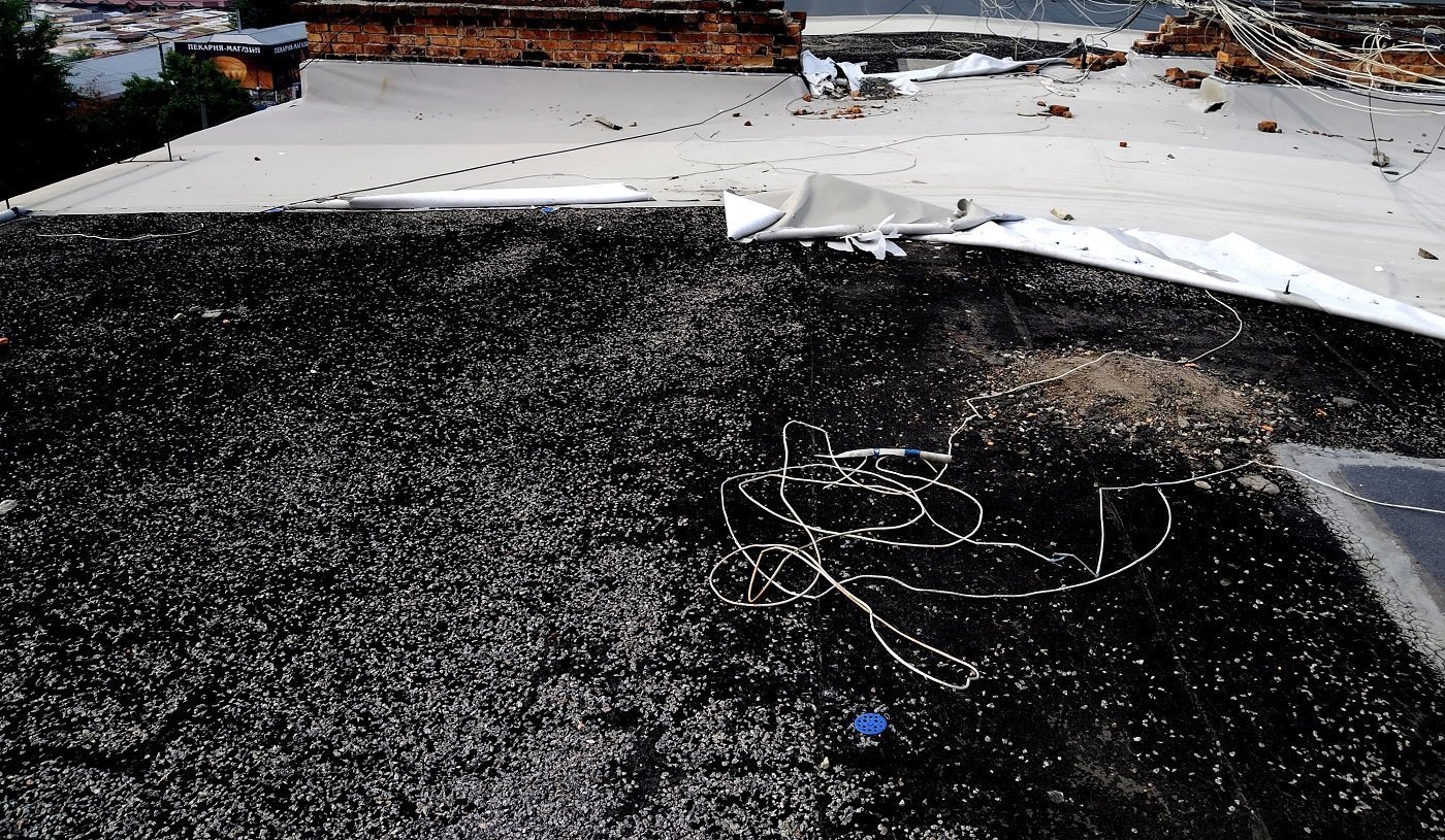 Спеціалістами компанії, був виконаний демонтаж всього пошкодженого мембранного покриття покрівлі з подальшим проведенням ремонтних робіт по заміні покриття єврорубероїдом.