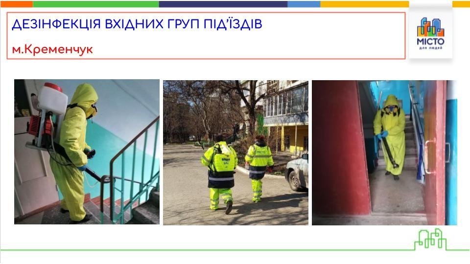 Крім того, весною 2020 року, під час першої хвилі пандемії, у посиленому режимі працювали робітники служби клінінгу. Саме за ініціативою компанії та за рекомендацією міської влади, яка визначила, що обробка місць загального користування є пріоритетною зараз, наші співробітники в числі перших розпочали дезінфекцію під’їздів, яка не входила до тарифу. Десятки двірників щодня виходили на передову та забезпечували не лише прибирання прибудинкової території, але й дезінфекцію будинків. Основна увага приділялася щоденній обробці дезінфікуючими засобами вхідних груп будинків, а також поручнів та ліфтів.