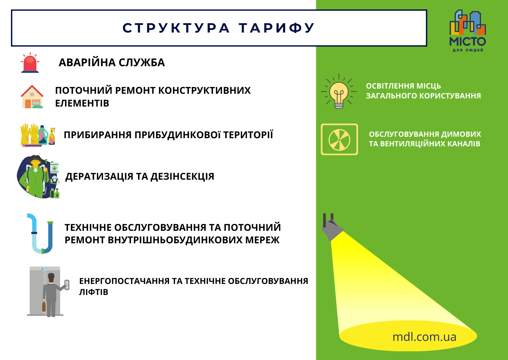 - прибирання під’їздів (цю послугу можна додати до тарифу при бажанні мешканців),