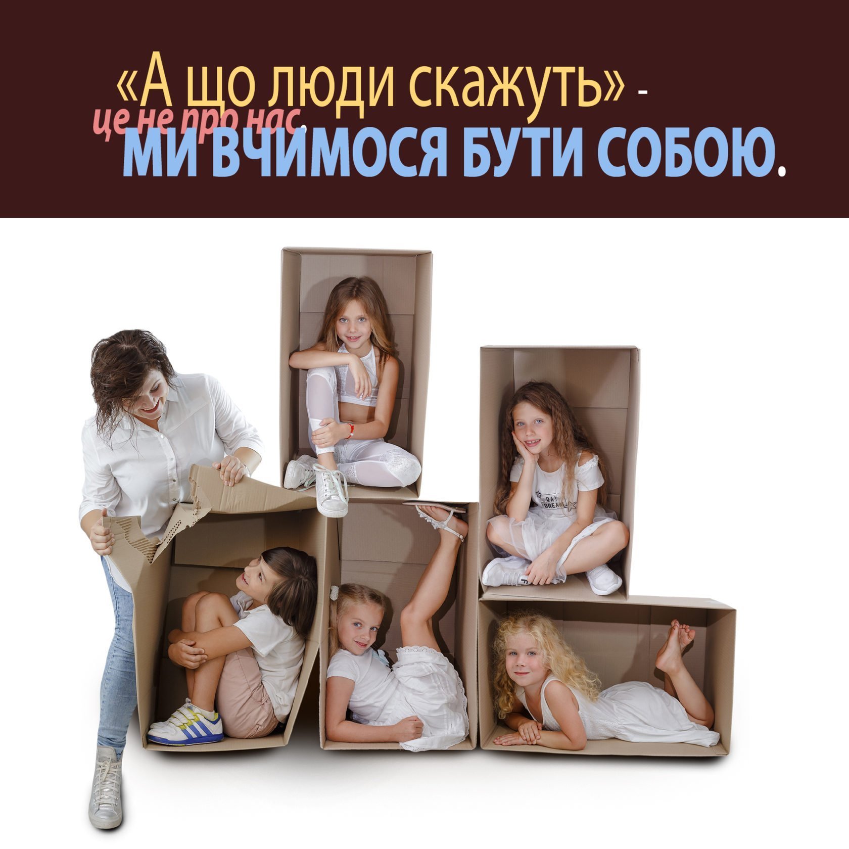 Суспільство нам говорить не Бути. Суспільство нам говорить: «Будь ось таким»! Будь як ця модель, як та дівчинка з сусіднього двору, як та подруга і т.д. Будьте плоскими, худими, такими, сякими. У школі нам кажуть будьте правильними, тихо сидить, мовчіть. Нас все життя забивають, як цвяхи. Дозвольте собі бути! Не заради того, щоб тебе похвалили. Щоб сказали, що ти хороший. І ти в вічному питанні. Відповідаєш ти очікуванням оточуючих. Чи ні. Бачите який я хороший?