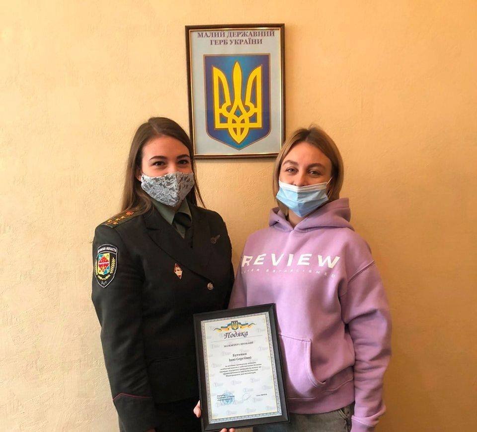 За тісну співпрацю, активну громадську позицію, особистий внесок у забезпечення безпеки громади, підтримку громадян на шляху до правослухняного життя з нагоди Міжнародного Дня волонтерів Інні Бутенко та Марині Куркач вручено подяки та значки з логотипом пробації від директора Державної установи «Центр пробації» Олега Янчука.