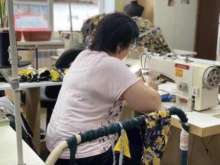 Навчально-виробничий центр - це швейний цех, де навчають і працевлаштовують жінок з місць позбавлення волі, з центрів адаптації, ВПО і просто жінок, які знаходяться в складних життєвих обставинах. Таких жінок у штаті приблизно 40%. Також серед них є жінки, що є постраждалими від домашнього насильства та перебували у притулку якийсь час. Нагадуємо, що єдиний притулок в Полтавській області для постраждалих від домашнього насильства діє лише в Полтаві вже 4 рік, він розрахований на перебування до 25 осіб.