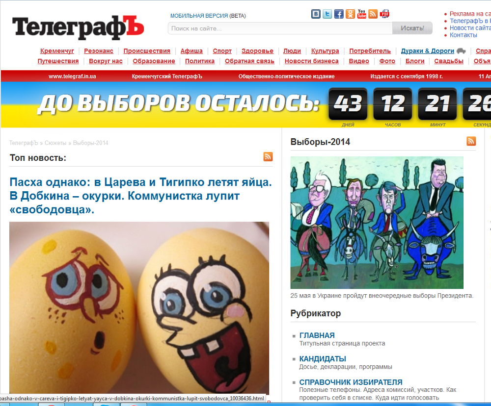«Кременчугский Телеграф» на время избирательной кампании запускает политический проект «Выборы-2014».