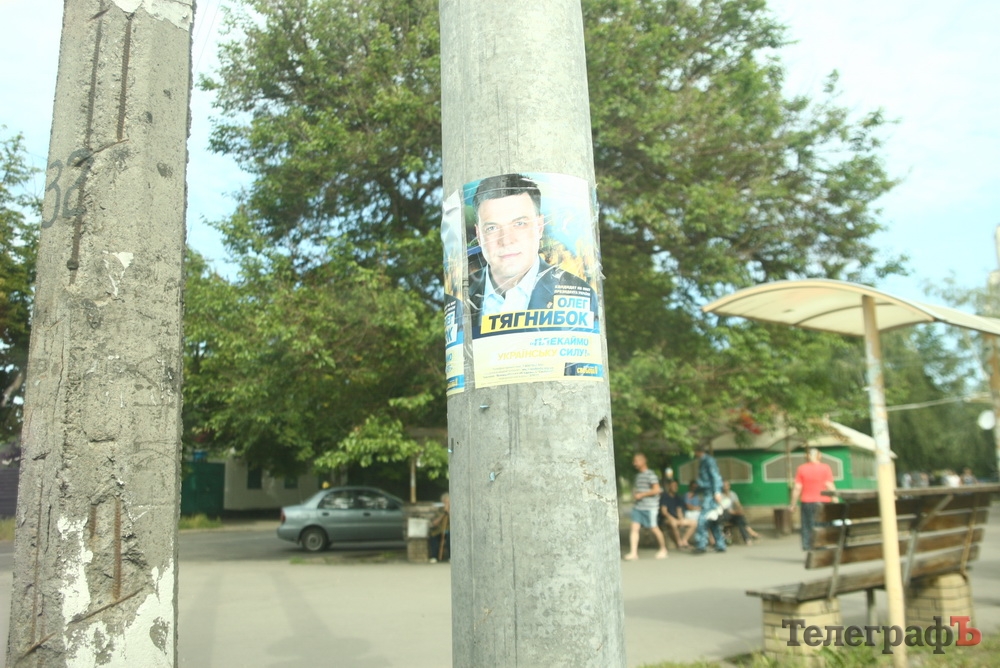 В основном на улицах висит агитация кандидата Олега Тягнибока.