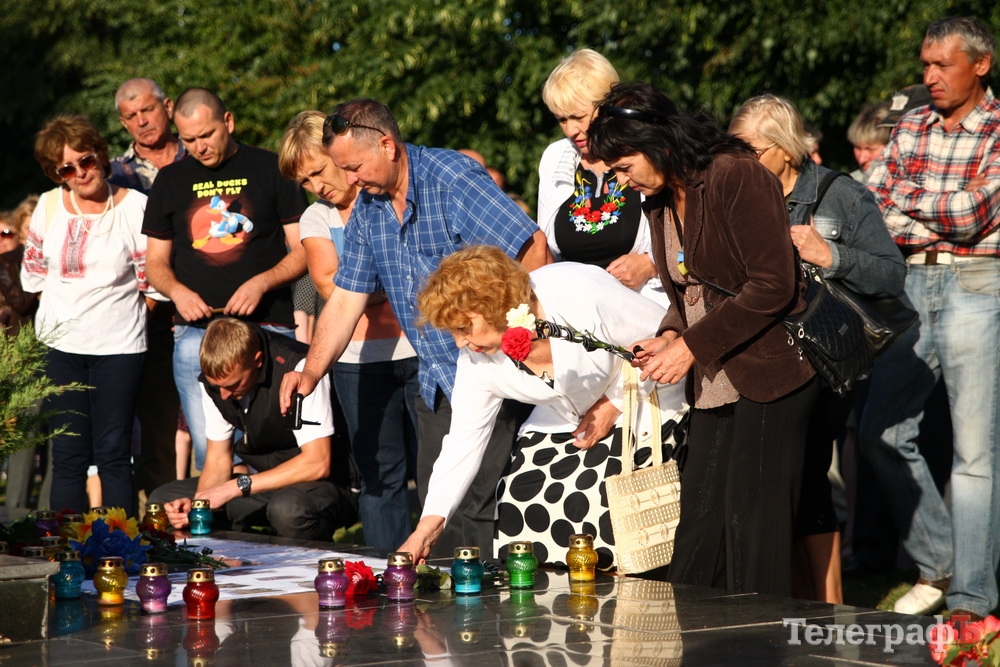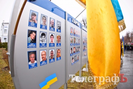 На площади Независимости активисты зачитали имена всех погибших над Луганским аэропортом, провели поминальную панихиду и возложили цветы