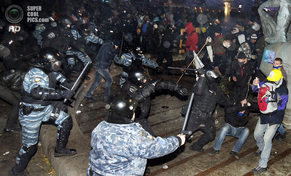 30 ноября 2013 года беркутовцы с дубинками, взрывчатыми пакетами разгоняли митингующих студентов