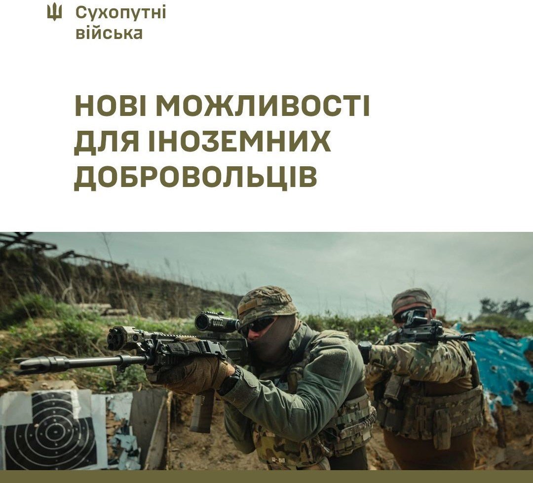 Сухопутні війська ЗСУ продовжують удосконалювати систему залучення та проходження військової служби іноземними добровольцями, які готові підписати контракт та вступити до лав Збройних Сил України. Про це повідомила пресслужба відомства.