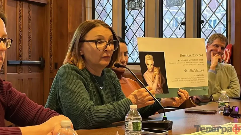 Учасниці зустрічі: голова ГО «Нумо, сестри!» Людмила Гусейнова й членкиня організації Юлія Дворниченко, які провели в російських катівнях кілька років, розповіли про незаконне затримання цивільних, про картування тортури й сексуальне насилля.