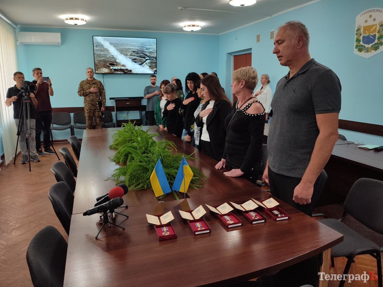 Державні нагороди рідним загиблих військовослужбовців передали очільник Кременчуцької районної військової адміністрації Олександр Аленін, начальник відділення цивільно-військового співробітництва Кременчуцького районного Територіального центру комплектування та соціальної підтримки майор Анна Тарасова та представник військової частини 3059 Національної гвардії України майор Ілля Пинтій.