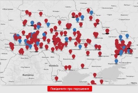 Сообщения проверяют модераторы. Официально подтвержденные нарушения на карте отмечены красными значками, не подтвержденные – синими.