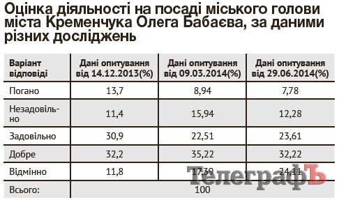 За цей час в Україні відбулося багато суспільно-політичних подій, які відобразилися і на житті Кременчука, і на ставленні кременчужан до дій міської влади в цілому та міського голови Олега Бабаєва зокрема. Значний вплив на кількість позитивних оцінок, які респонденти виставляли міському голові, мало те, що він зміг утримати ситуацію в місті під час революційних подій, не допустив кровопролиття, проявив толерантність у ставленні до діяльності в місті різних політичних сил і відкрито висловив особисту позицію щодо складної політичної ситуації в країні. Крім цього, кременчужани схвально ставляться до господарської діяльності міського голови.