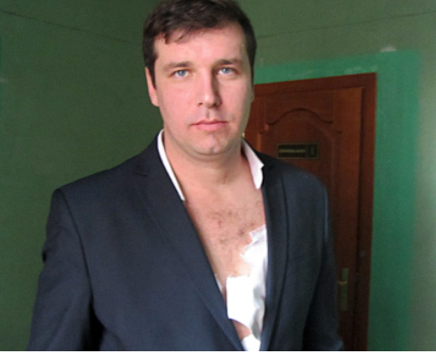 Александр Шамота продемонстрировал СМИ свои повреждения – порванную рубашку и царапины на шее: