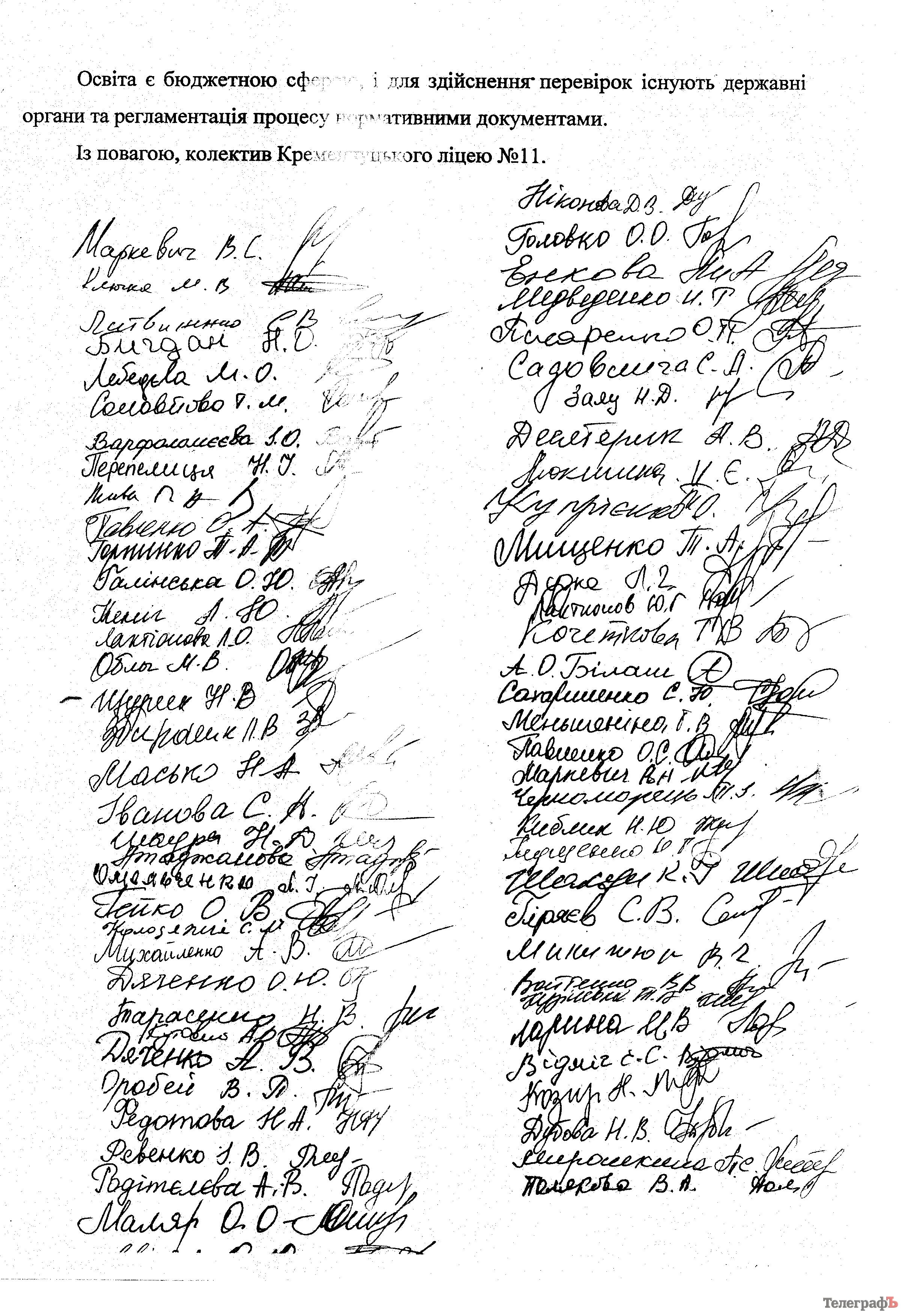 Коллектив лицея №11 требует от мэра Кременчуга Виталия Малецкого поднять на ближайшей сессии вопрос о переводе депутата Татьяны Сидерки из постоянной депутатской комиссии по вопросам социальной защиты в другую комиссию. Причиной этому стала проверка лицея, которую депутат провела 17 января.