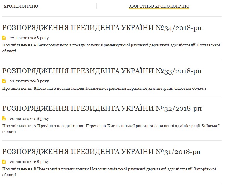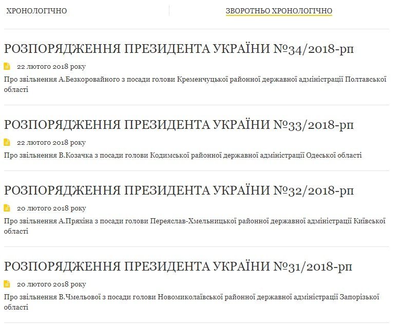 С такой же формулировкой в последнее время были уволены с должностей ряд глав райгосадминистрации в разных регионах Украины.