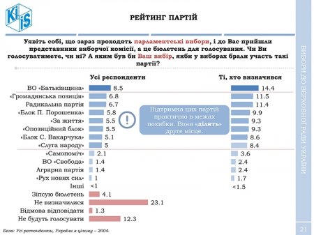 КМІС віддає «Громадянської позиції» 11,5% голосів (серед тих, хто визначився із вибором) і чисте друге місце у змаганнях до Верховної Ради України.
