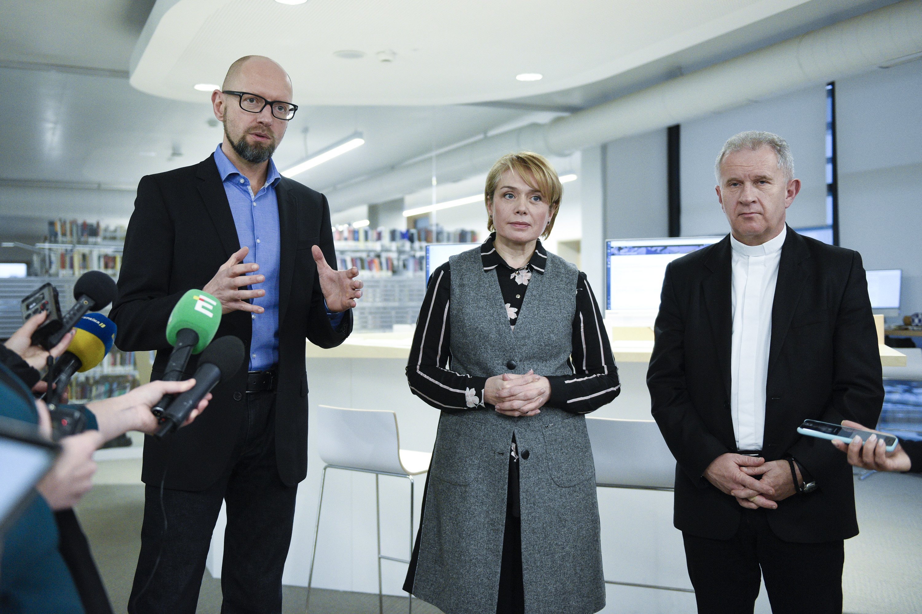 Арсеній Яценюк відвідав УКУ разом з міністром освіти і науки України Лілією Гриневич.