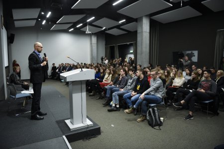 Арсеній Яценюк звернувся до студентства УКУ: "Перед нами виклики, але перед нами великі можливості. А перед вами – так точно".