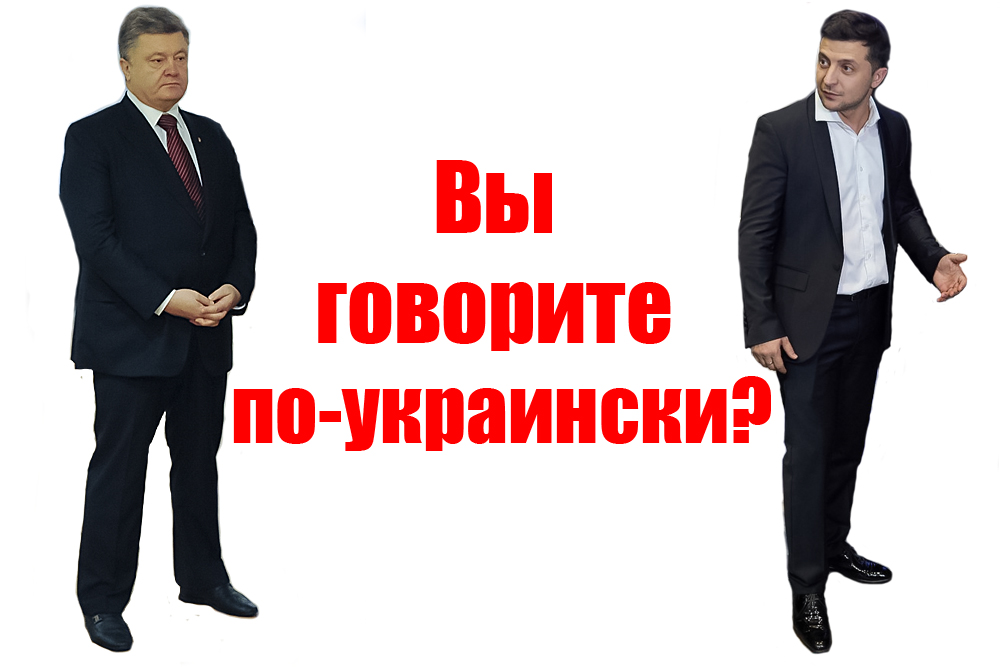 | Да, кандидат Порошенко свободно говорит по-украински. Порошенко и Ющенко – два украинских президента, свободно и достаточно грамотно говорившие на государственном языке Украины. | Нет, кандидат Зеленский не говорит по-украински. В начале избирательной кампании его команда запустила ролик, где Зеленский показывает, как ему тяжело дается украинский язык – он подтягивается на перекладине каждый раз, когда не может найти правильный перевод слова с украинского на русский. Похоже, подтягивания результата не дали – и сегодня, в конце избирательной кампании, Зеленский, сказав несколько слов по-украински, переходит на русский. |
