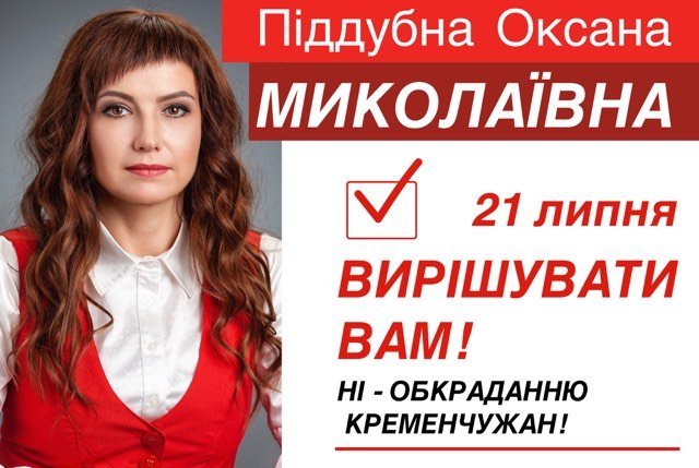Я, Піддубна Оксана (увага) МИКОЛАЇВНА, з вами не на бордах, я з вами у повсякденному житті і це відрізняє мене від інших кандидатів.