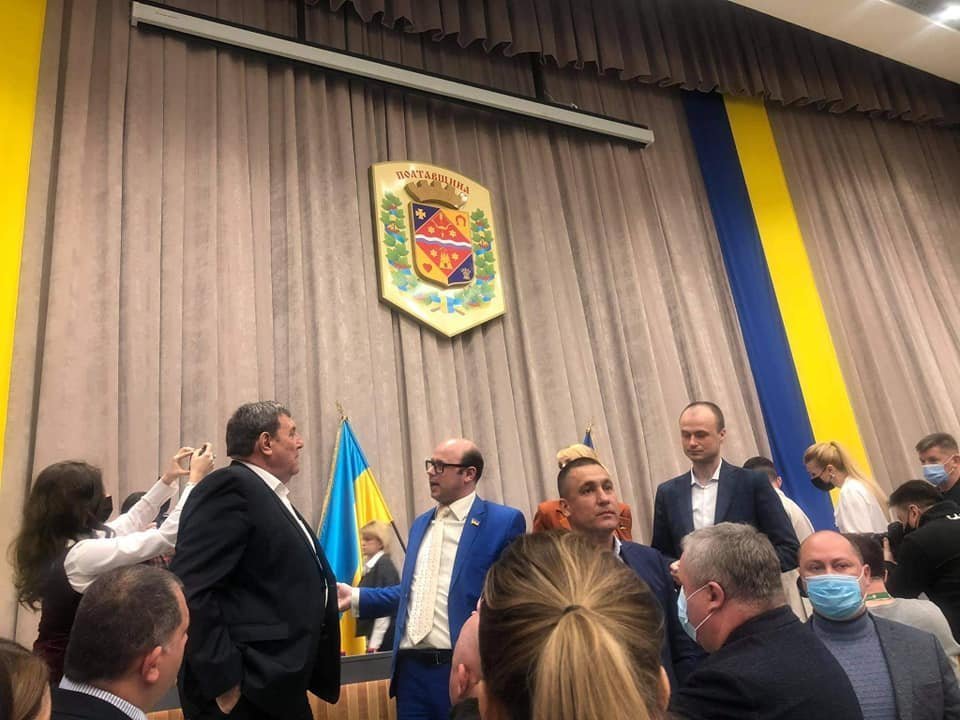 Сесія Полтавської облради, що відбулася 9 квітня, не відбулася лише одним скандалом з блокуванням трибуни. З’ясування стосунків між представниками фракцій «За майбутнє» і «Довіра», яке почалося ще під час блокування трибуни, продовжувалося.
