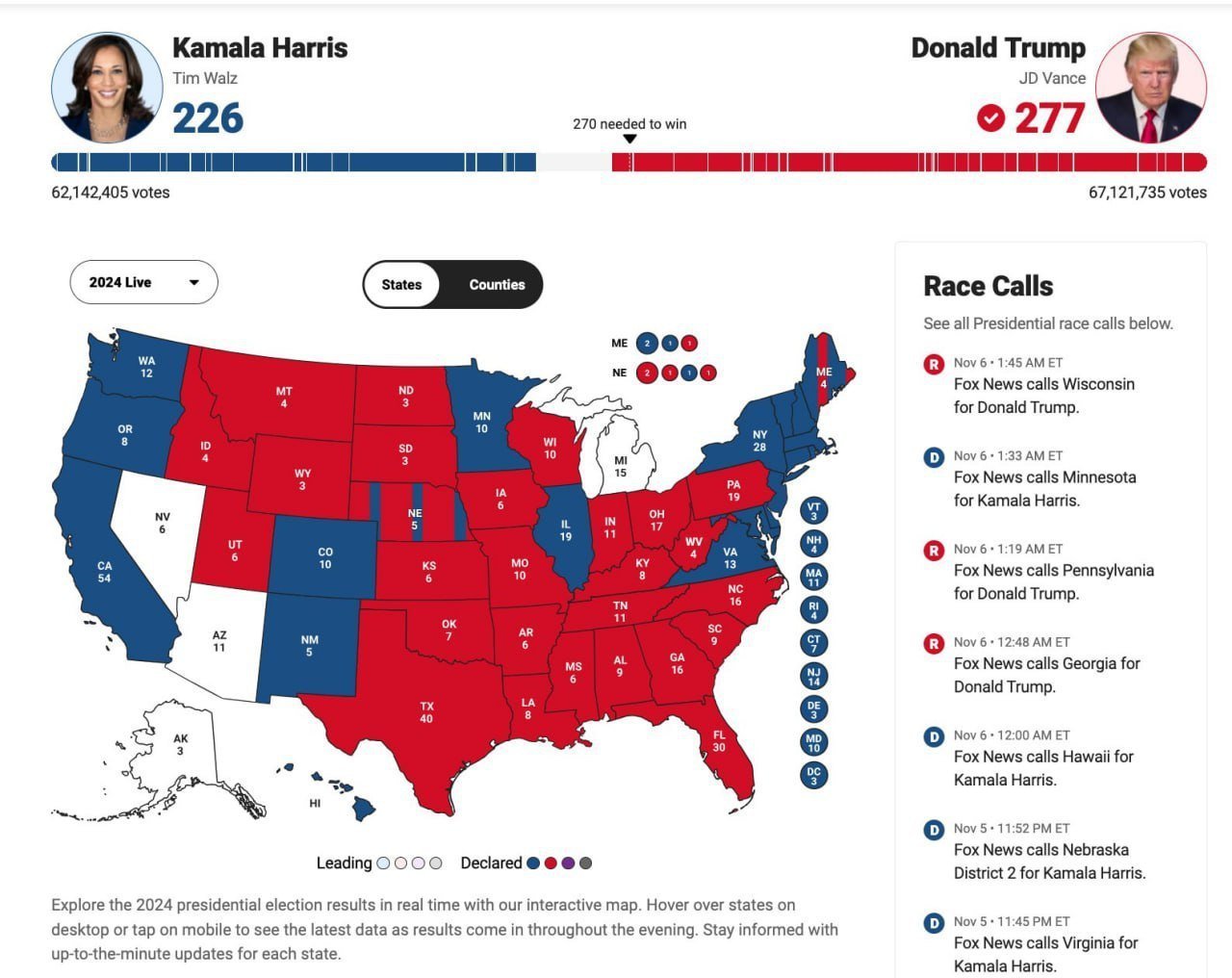 Офіційний підрахунок голосів та оголошення результатів виборів в США ще тривають.