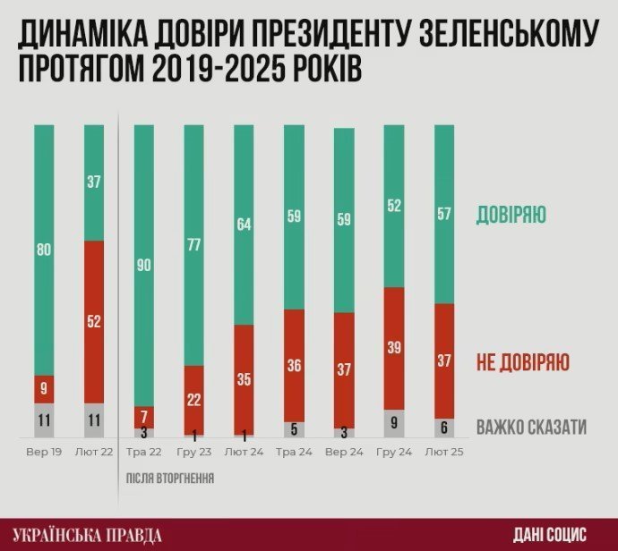 Президент США Дональд Трамп заявив, що Україні потрібно провести вибори, якщо вона хоче мати місце за столом переговорів. Він також стверджував, що рівень підтримки Володимира Зеленського нібито становить 4%. Крім того, він назвав Зеленського «диктатором без виборів». Володимир Зеленський відповів на заяви Трампа, зазначивши, що той став жертвою російської дезінформації.