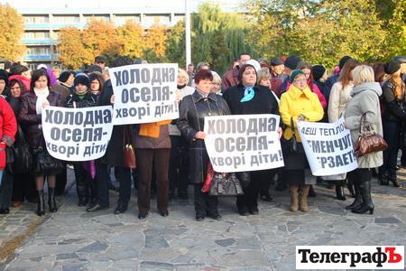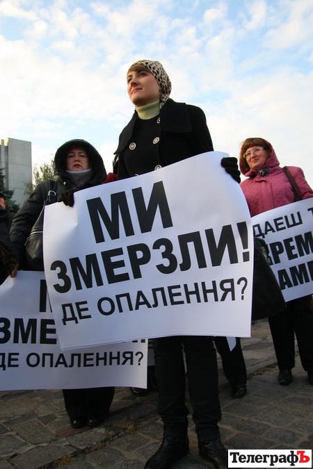 Представители нардепа держали транспоранты с надписями: ’’Дайте тепло в Крюков’’, ’’Дайте горячую воду на Занасыпь’’.