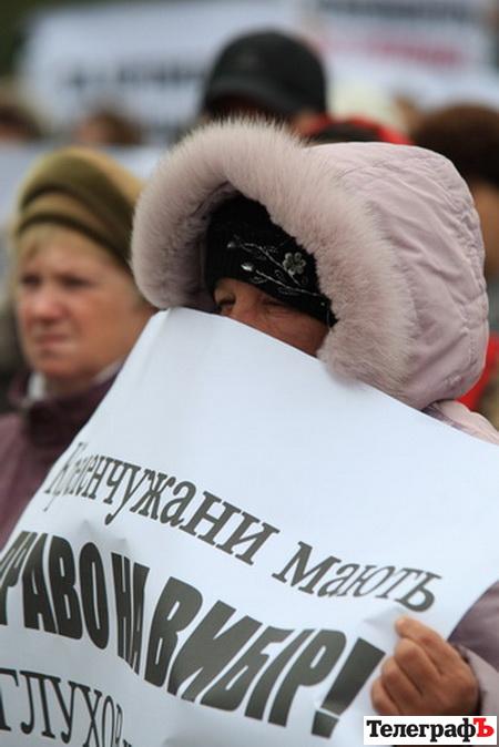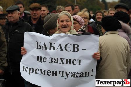В Кременчуге перед заседанием избирательной комиссии 19 октября под горисполкомом прошел митинг в поддержку Олега Бабаева, регистрацию которого как кандидата на пост городского головы на том же заседании избирательная комиссия отменила.