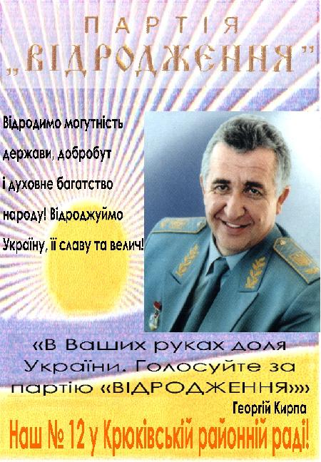Мета партії «Відродження» – не порожні обіцянки, а продуктивна праця. Кожен депутат повинен прагнути стабільної роботи усіх соціальних служб, починаючи зі швидкої допомоги, лікарень, дитячих садків, шкіл та навчальних закладів і закінчуючи вивозом сміття. Незважаючи на кризу, залізниця піклується про пенсіонерів, і це для нас дуже важливо, це – майже закон.