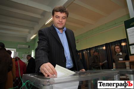 Андрей Безкоровайный в 9 утра, в хорошем настроении, появился на избирательном участке, расположенном в помещении «Житлорембудсервиса». В течении 10 минут он получил бюллетени и проголосовал.