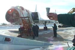 Натомість за кілька кілометрів звідси все вже було готове до утилізації шістдесятого українського бомбардувальника. Останнього із тих, що вважалися гордістю важкої авіації України. На аеродромі чекали Посла США в Україні Джона Гербста та його свиту...