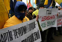 На мітинг протесту партія вийшла з цілком відвертими лозунгами: “Годі дерибанити нашу землю!”; “Питання по землі – новій міській раді!”.