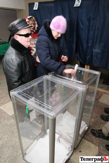 Зранку «Телеграф» побував і на виборчій дільниці, де голосували люди з вадами зору. Однофамільці одного з кандидатів – Сергій та Лариса Тимошенко – абсолютно незрячі. Самі вони не можуть ні розписатися за видані бюлетені, ні поставити позначку. І навіть у паспортах немає їхніх підписів…