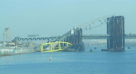 В Киеве на строительстве моста упал кран. Происшествие случилось 18 ноября около 11.00. По информации МЧС, по предварительным данным в кране находилось 8 человек. Пятеро спаслись самостоятельно, троих спасли работники Киевской службы спасения ГУ МЧС в Киеве.