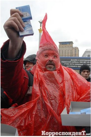 Организатора акции, председателя правления Коалиции участников оранжевой революции Сергея Мельниченко за такой "креатив" посадили на 15 суток.