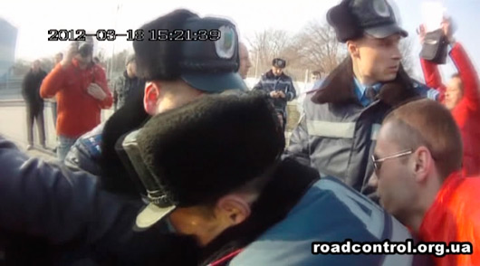 Когда "Дорожный контроль" в присутствии подполковника ГАИ попросил показать сфальсифицированные протоколы, сам подполковник убежал в сторону, а виновный инспектор попытался их уничтожить. В результате, между ГАИшниками и активистами "ДК" завязалась потасовка.