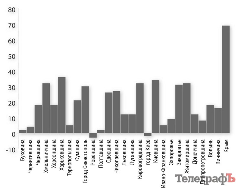 Изучая данные по разным городам, «Свідомо» заметило, что скачок преступности фактически произошел в 11 регионах. Это Крым с ужасающим 70-процентрым ростом тяжких и особо тяжких преступлений за два года. Это Харьковщина, Киевщина, Житомирщина, Кировоградщина, Хмельниччина и Закарпатье, где число таких преступлений увеличилось на 30 и более процентов. Плюс Севастополь вместе с Николаевщиной, Одещиной и Сумщиной, где рост превысил 20%.