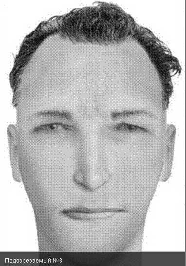 Третий подозреваемый - возраст 35-45 лет, рост средний, худощавого телосложения, волосы русые, жидкие, зачесанные назад, был одет в брюки, рубашку светлого цвета.