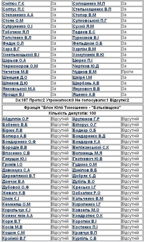 В частности, решение поддержали 187 из 192 депутатов фракции Партии регионов. "За" проголосовал и народный депутат Украины из Кременчуга Олег Надоша.
