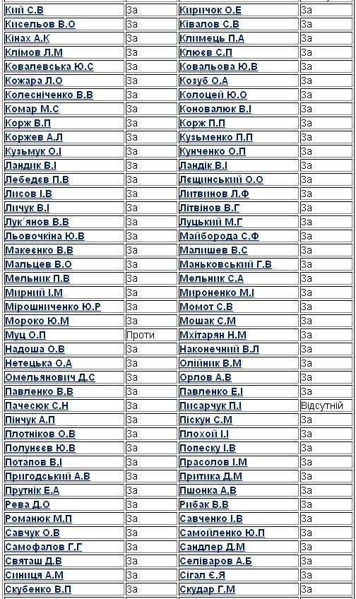 Поименный список тех, кто поддержал законопроект Колисниченко-Кивалова (проект Закона об основах государственной языковой политики).