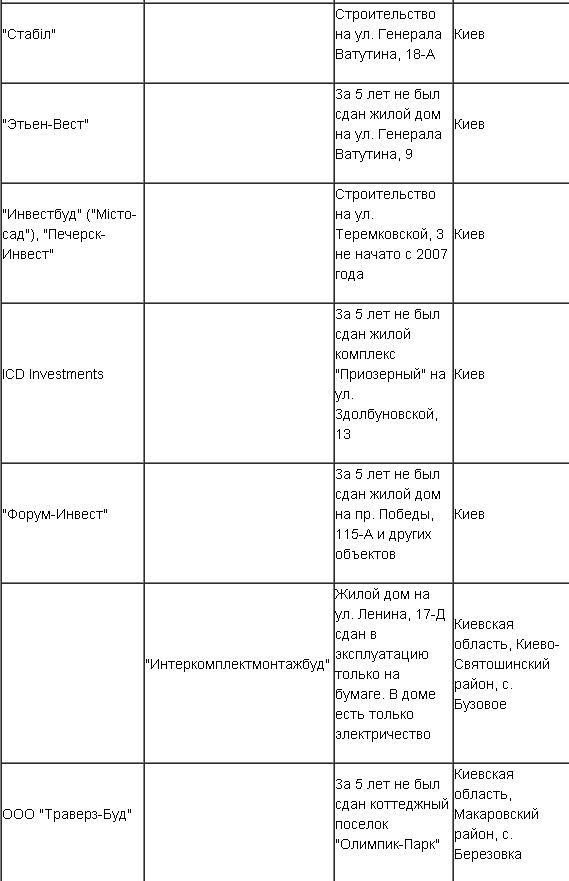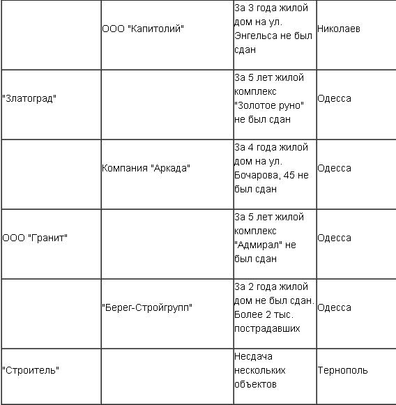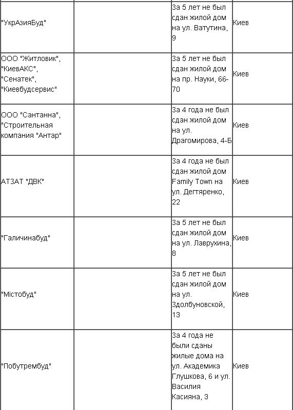 В список попали строительные компании, которые очень долго строят или же имеют недострои, приближающиеся к критической ситуации
