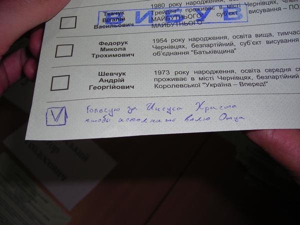 Некоторые украинцы, не желающие голосовать за реальных кандидатов, отдавали свои голоса Бараку Обаме и даже Иисусу Христу.