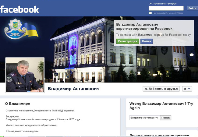 ГАИ Украины проинформировала об открытии в социальной сети Facebook страниц Департамента ГАИ МВД Украины и лично нового начальника Департамента Госавтоинспекции МВД Украины Владимира Астапковича. Согласно информации пресс-службы милицейского ведомства, данный шаг предпринят руководством ГАИ впервые и свидетельствует о достаточно прогрессивном мировоззрении нового руководителя. Напомним, что Владимир Астапкович был назначен начальником Департамента ГАИ недавно – 8 февраля текущего года.